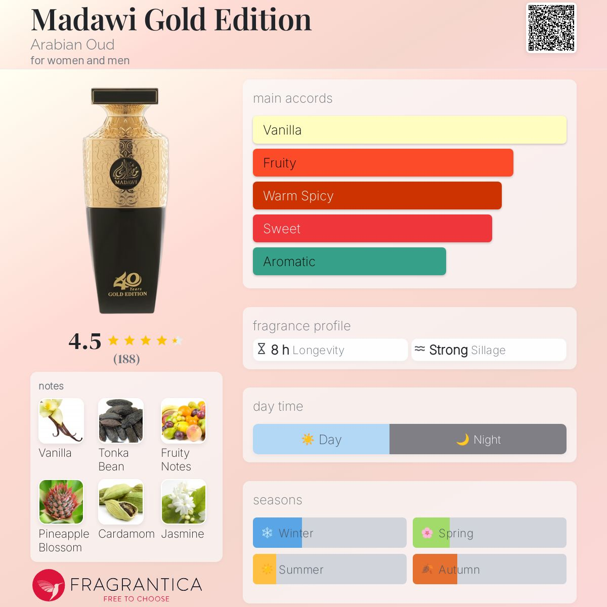 يُعد Madawi 40 من العربية للعود واحداً من العطور الشرقية الفاخرة التي تجمع بين الحيوية والدفء في تركيبة متوازنة وجذابة. يبدأ العطر بنفحات منعشة من الفواكه مع لمسة الهيل العطرية التي تضيف طابعاً دافئاً ومميزاً، ثم يتطور إلى قلب غني يجمع بين الأناناس والياسمين مع نعومة التونكا.