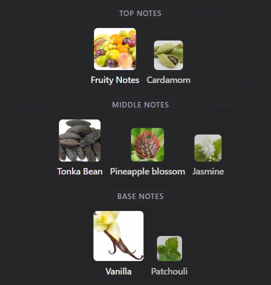 وفي القاعدة تظهر الفانيلا مع الباتشولي لتمنح العطر عمقاً دافئاً وثباتاً رائعاً يدوم لساعات طويلة، مما يجعل هذا العطر مثالياً لمن يبحث عن رائحة فاخرة تجمع بين الحلاوة والدفء بلمسة شرقية أنيقة.